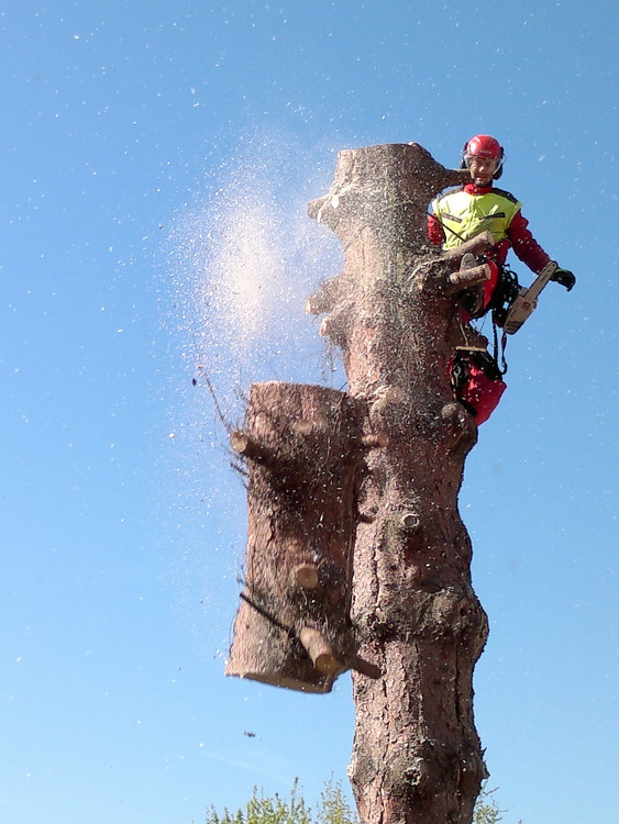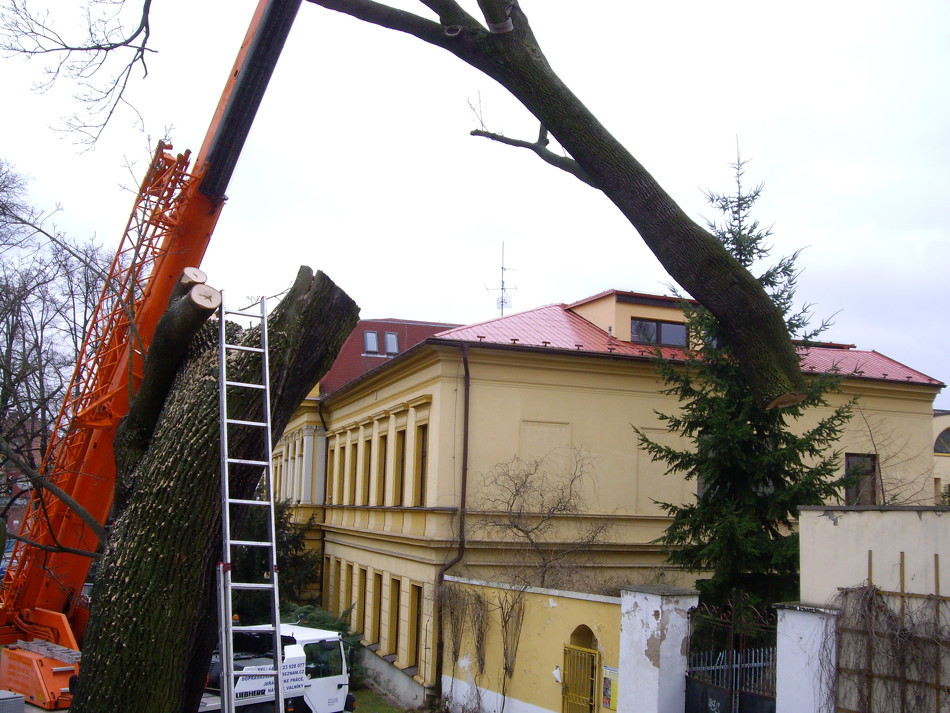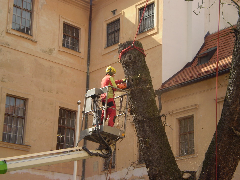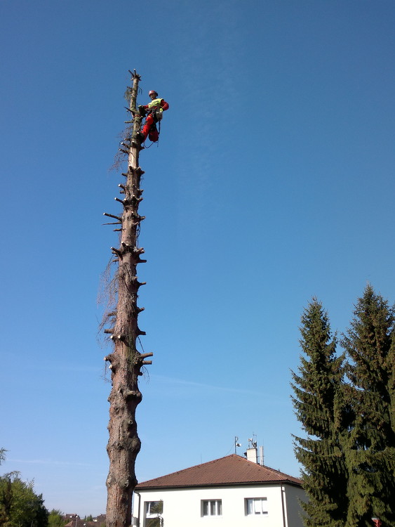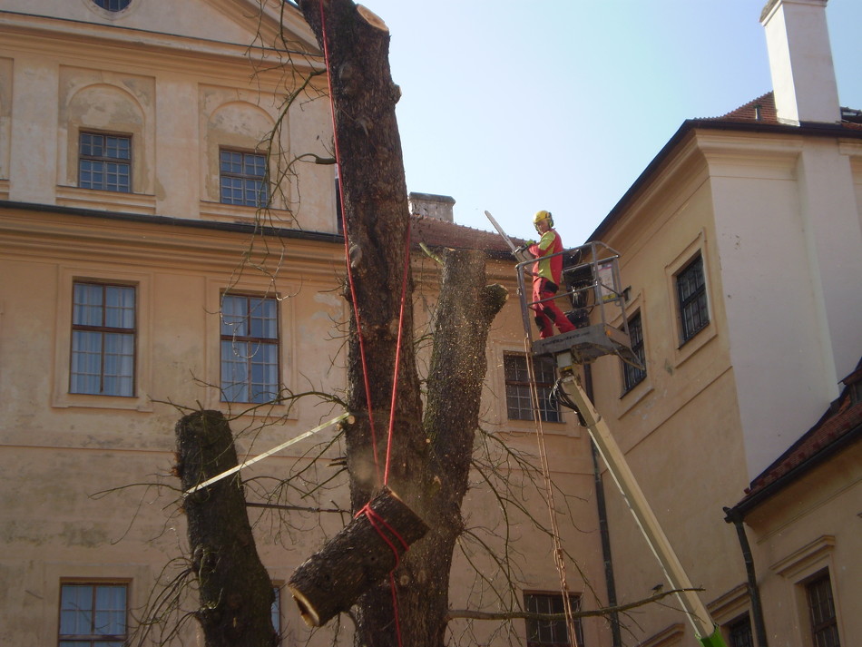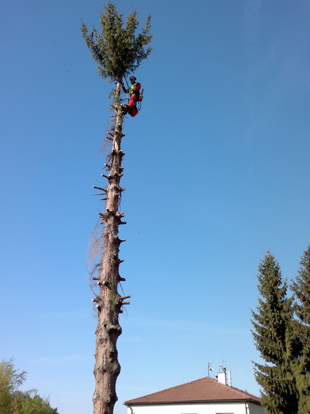 Jedná se o postupné kácení stromu tak, aby nedošlo k poškození objektů pod, nebo v blízkosti káceného stromu. Kácení probíhá za pomocí systémů odchytových lan a kladek technikou, která vyžaduje zkušenosti a profesionální přístup. Cílem zásahu je postupné odřezávání a bezpečné spouštění odřezaných částí stromu na zem při zachování maximální bezpečnosti. Postupné kácení lze provádět také s využitím plošiny, pokud to podmínky umožňují. Pak je tato práce méně náročná, ale je třeba zohlednit náklady spojené s využitím plošiny.