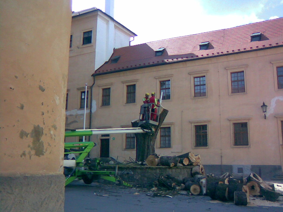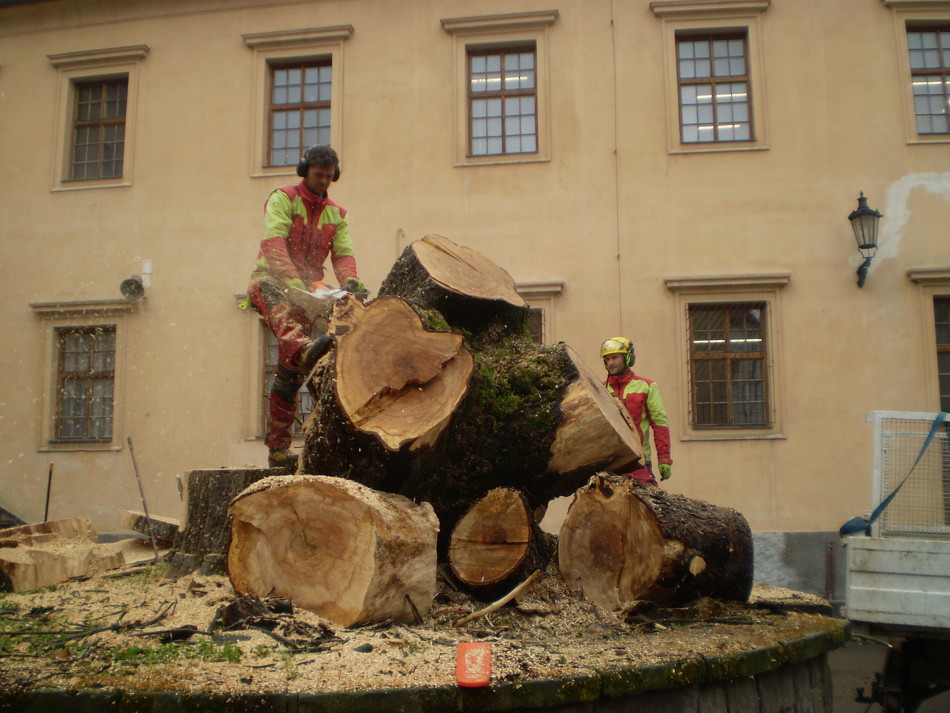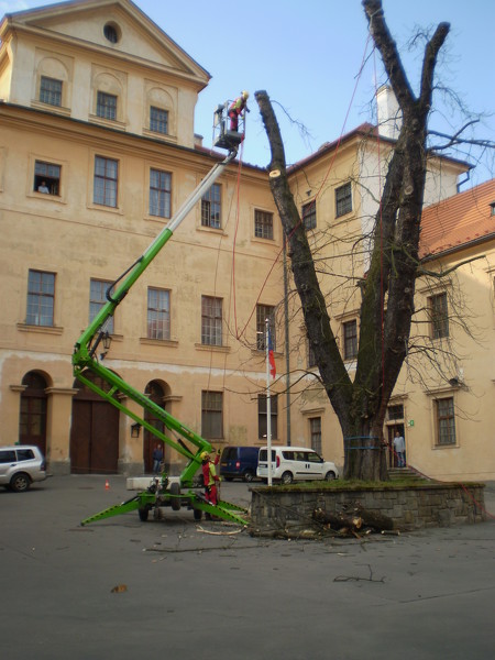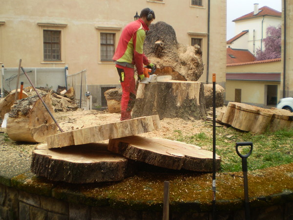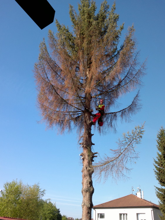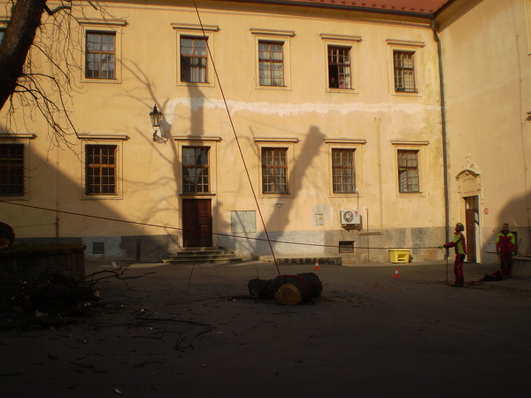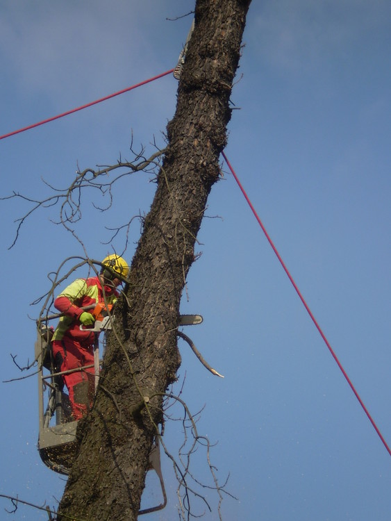 Jedná se o postupné kácení stromu tak, aby nedošlo k poškození objektů pod, nebo v blízkosti káceného stromu. Kácení probíhá za pomocí systémů odchytových lan a kladek technikou, která vyžaduje zkušenosti a profesionální přístup. Cílem zásahu je postupné odřezávání a bezpečné spouštění odřezaných částí stromu na zem při zachování maximální bezpečnosti. Postupné kácení lze provádět také s využitím plošiny, pokud to podmínky umožňují. Pak je tato práce méně náročná, ale je třeba zohlednit náklady spojené s využitím plošiny.